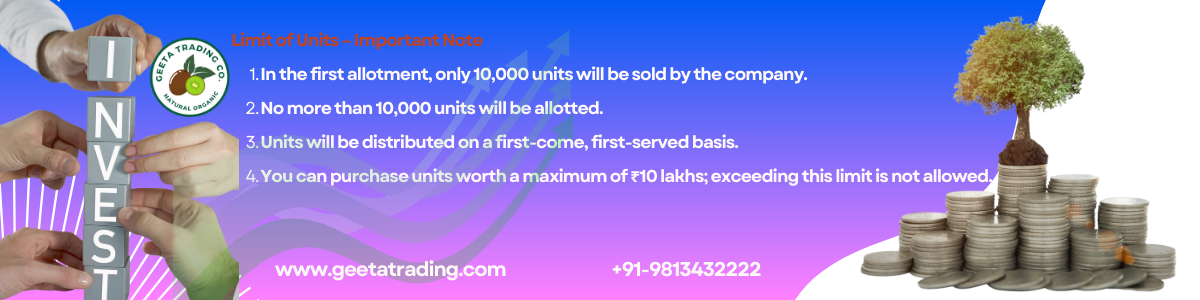 ✅ Expansion into Warehousing & Stock Management – We plan to establish our own warehouses to efficiently store and manage agricultural products, ensuring better supply chain control and quality maintenance.